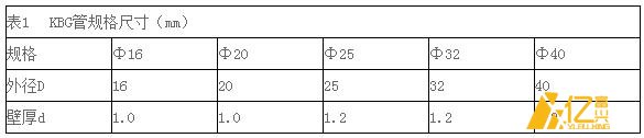 表1 KBG管規格尺寸(mm)